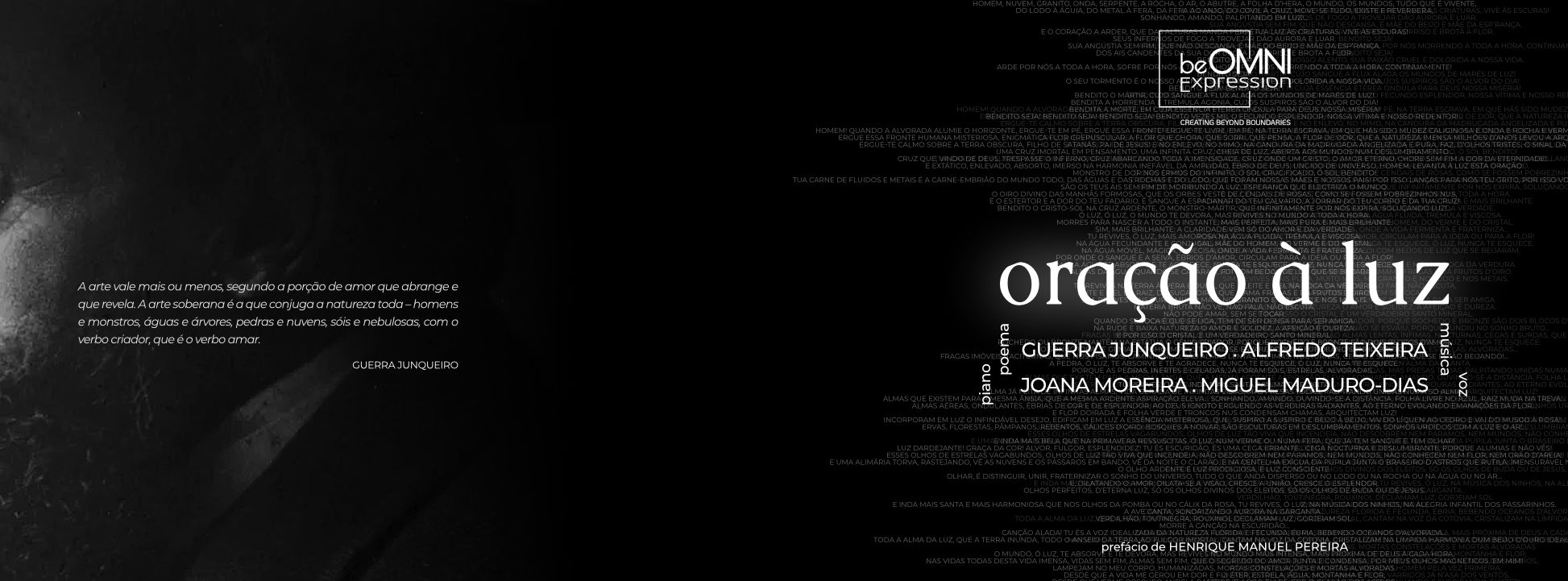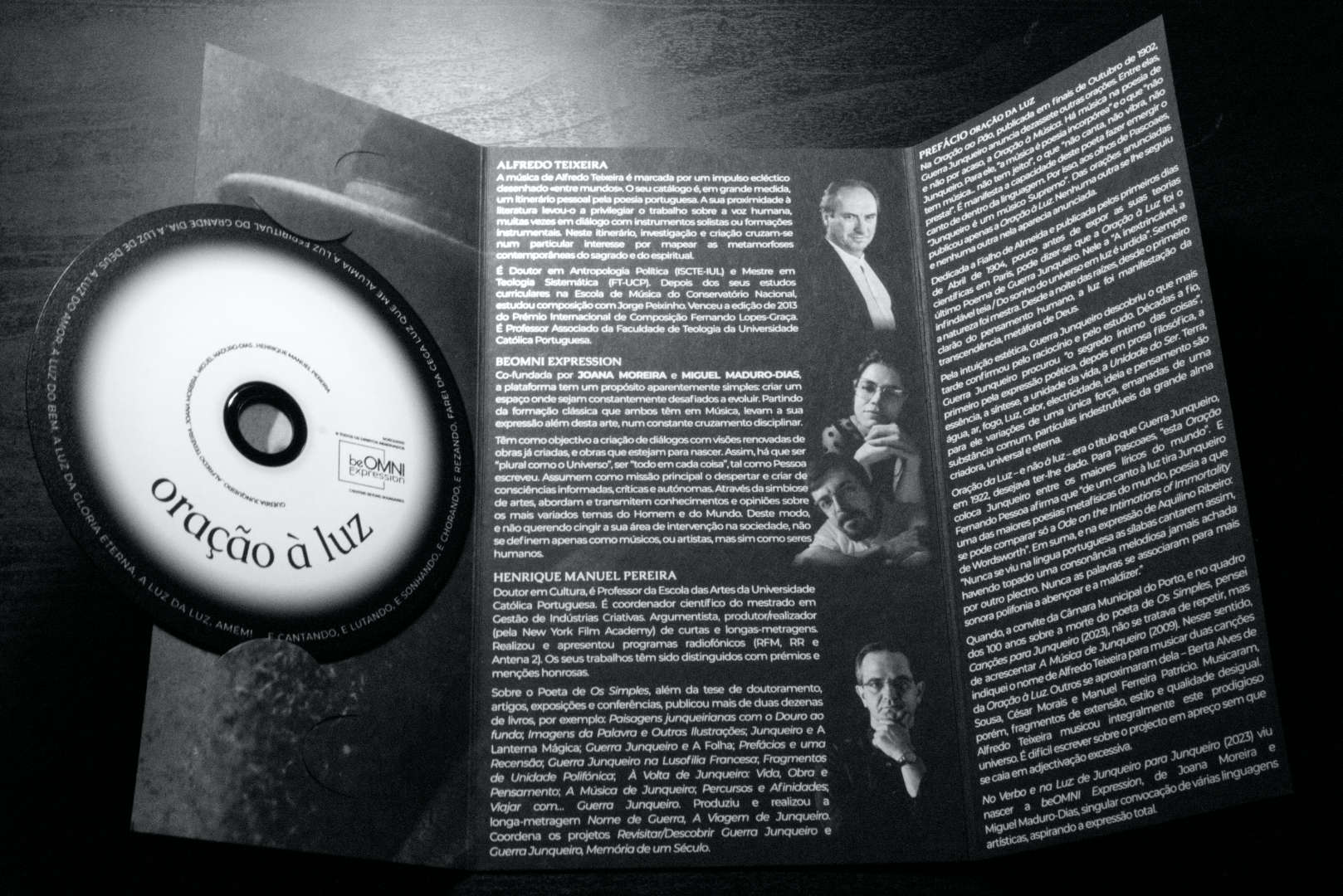 Ciclo de 10 Canções para Voz e Piano composto por Alfredo Teixeira a partir do poema-livro "Oração à Luz" de Guerra Junqueiro, onde, para além da interpretação musical, estiveram a nosso cargo os trabalhos de captação, edição, masterização de som, bem como o design gráfico.